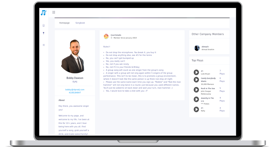 Social Connection in place, allowing your singers to connect with you on any medium. Build a following that keeps your venues happy and begging for more.
